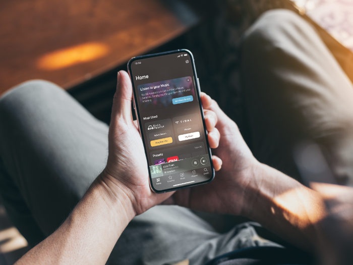 Ovládání PULSE CINEMA je maximálně flexibilní. Připojení přes HDMI eARC vám umožní používat přímo ovladač od vašeho televizoru, takže hlasitost či zapínání máte vždy po ruce. Pokud preferujete vlastní dálkový ovladač, CINEMA se naučí jeho příkazy pomocí funkce IR learning. K dispozici jsou i přizpůsobitelná dotyková tlačítka přímo na soundbaru a plnohodnotná mobilní aplikace BluOS v češtině.