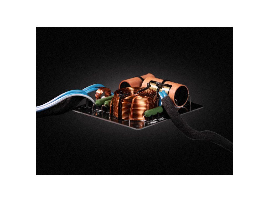 Dynaudio Legend využívá dvoupásmovou výhybku s minimálním počtem komponent, aby signál procházel co nejkratší a nejčistší cestou. Všechno stojí na pečlivě vybraných prémiových komponentech – bez korekcí impedance, fáze či ekvalizéru.
