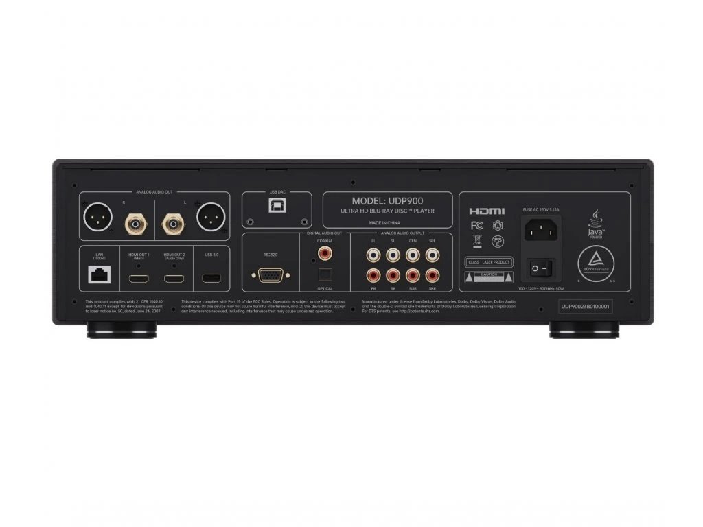 UDP900 podporuje všechny nejmodernější video standardy vysokého dynamického obrazu Dolby Vision a HDR včetně HDR 10+. Audiofilové budou nadšeni ze zvukového projevu nejen ve stereo reprodukci, kde byl použit špičkový D/A převodník ESS9038PRO samozřejmě nemohou chybět RCA a XLR symetrické analogové výstupy pro zakomponování pro 2-kanálové high end audio sestavy. Velkou devízou je implementace 7.1 analogového výstupu v podobě RCA poháněným D/A převodníkem ESS9028PRO. Nevídaným prvkem je kvalitní sluchátkový výstup a USB B vstup pro využití zmíněného špičkového D/A převodníku pro připojení nejmodernějších audio streamerů či PC.
