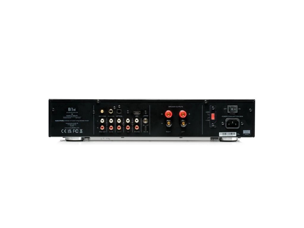 B1xi je všestranný a výkonný integrovaný zesilovač, v němž se uplatňuje know-how značky Musical Fidelity. Vychází z konstrukčních principů vlajkových modelů a díky propracovanému obvodu třídy A/B poskytuje dostatečný výkon pro většinu reprosoustav (60W/8Ω, 100W/4Ω & 140W/2Ω) nabízející bohatý a dynamický zvuk. Je navržen pro bezproblémovou integraci s nejrůznějšími analogovými i digitálními( vč.Bluetooth) zdroji signálu, přítomen je také stále více vyhledávaný HDMI ARC pro co nejpohodlnější používání s moderními televizory. Majitelé gramofonů s MM přenoskou mohou vyžívat kvalitní Phono vstup.