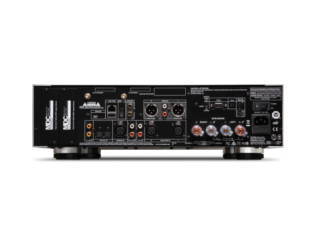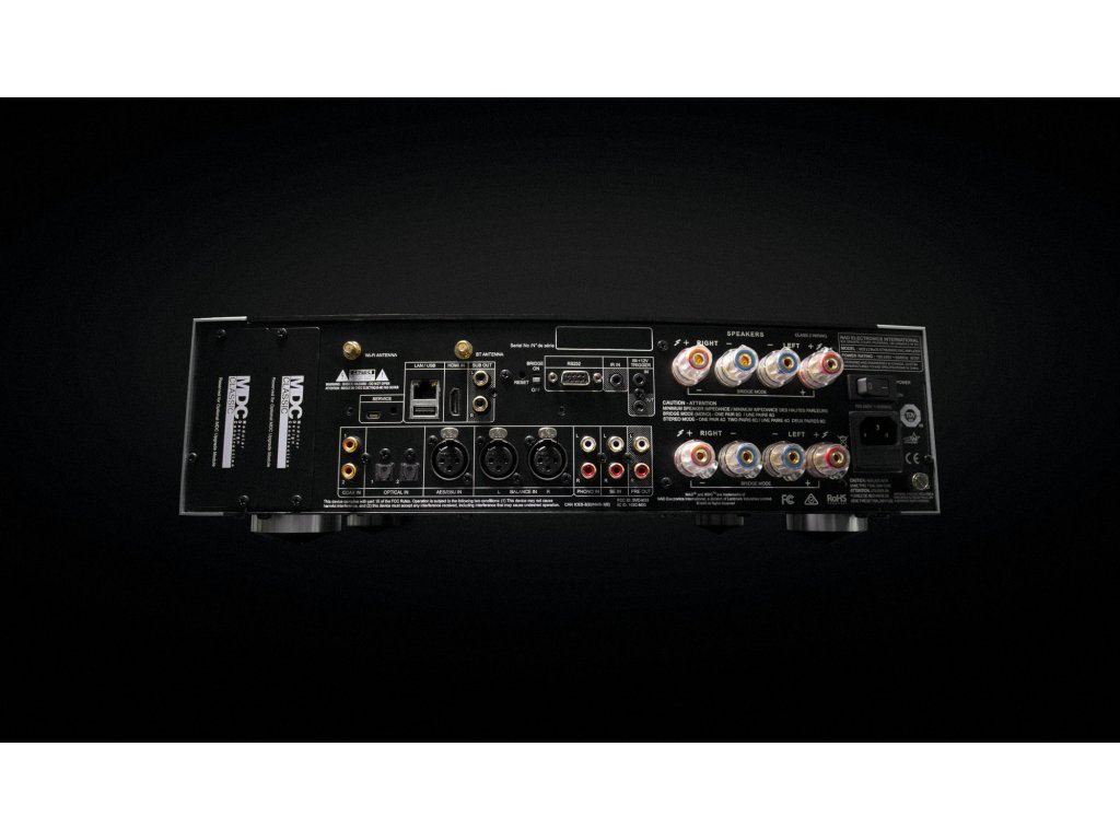 Vstupy | 1 x stereo XLR symetrický, 1 x AES/EBU, 1 x stereo linkový RCA, 1 x stereo vstup pro gramofon, 2 x digitální koaxiální, 2 x digitální optický TOSLINK, 1 x HDMI eARC, 1 x USB-A, 1 x USB-B mini (pouze pro servisní účely), 1 x Gigabit Ethernet RJ45, 1 x WiFi anténa, 1 x Bluetooth anténa, 1 x RS232, 1 x IR 3.5 mm jack, 1 x 12 V trigger 3.5 mm jack |