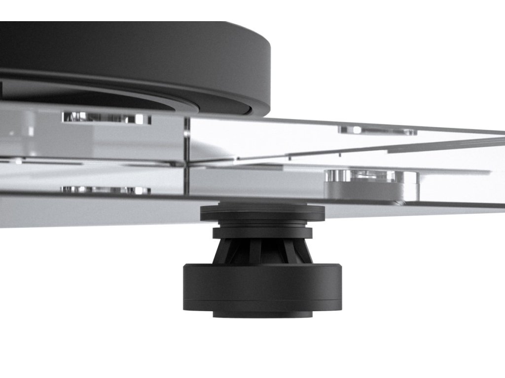 Gramofon XA B je usazen na třech výškově nastavitelných vytlumených nožkách, které zaručují optimální stabilitu. Nožky omezují velmi dobře přenos vibrací z okolí na šasi gramofonu a zároveň umožňují i vyrovnání gramofonu na nerovném povrchu, protože dokonale rovný gramofon je nezbytný pro skutečně špičkový zvuk.