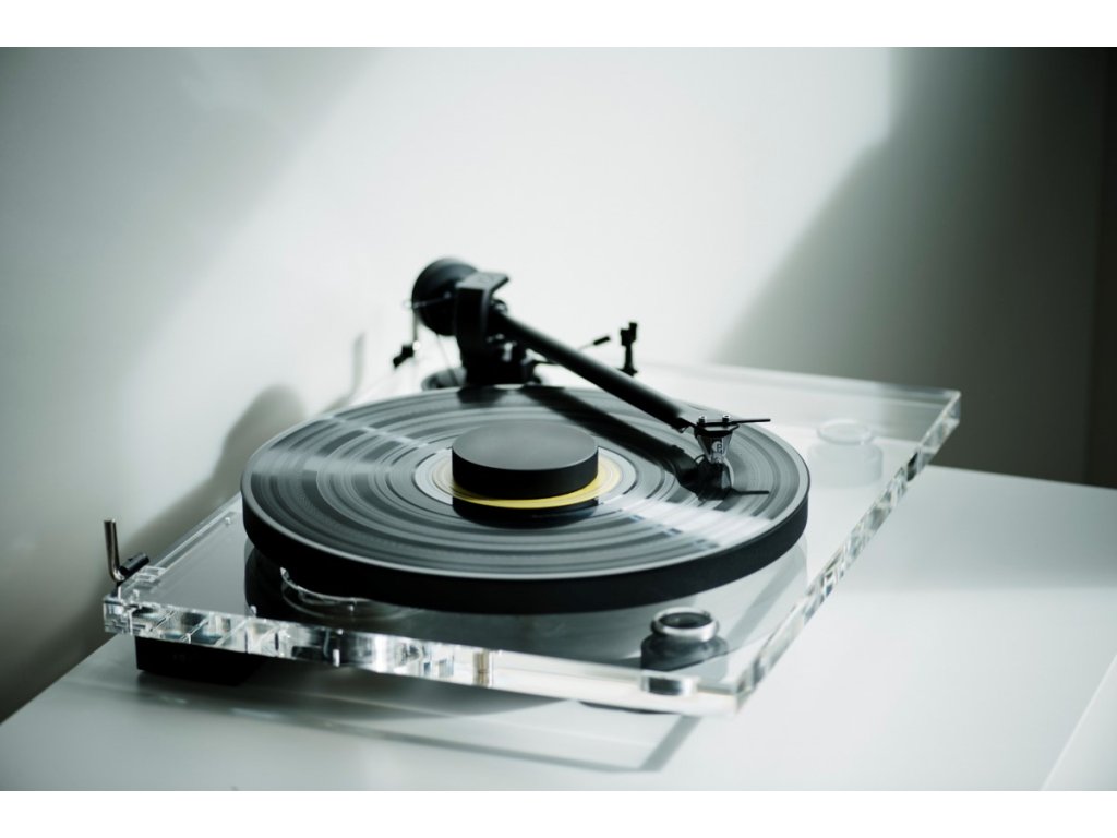 1,7 kg těžký talíř z tlakově litého hliníku prošel procesem precizního opracování a přesného vyvážení, aby získal špičkové vlastnosti. Talíř má na vnitřní straně po obvodu kruh z TPE (termoplastický elastomer), který pomáhá tlumit příchozí rezonance a tím minimalizovat kolísání otáček. Součástí dodávky je i přítlačné závaží Record Puck E, které zlepšuje úroveň tlumení a stability. Zároveň využívá své hmotnost k fixaci hrající vinylové desky na talíři gramofonu. Stabilním spojením desky s talířem se zlepší zvukový výkon v oblasti načasování a objemu.