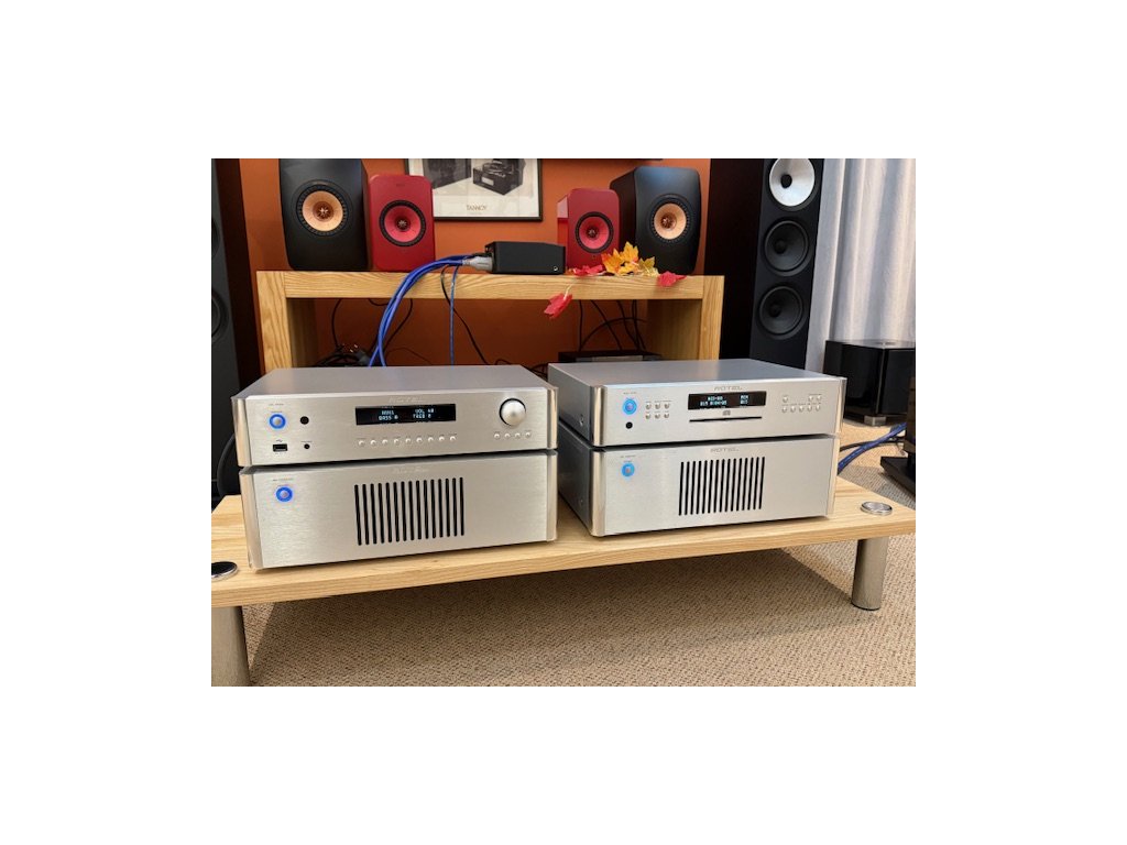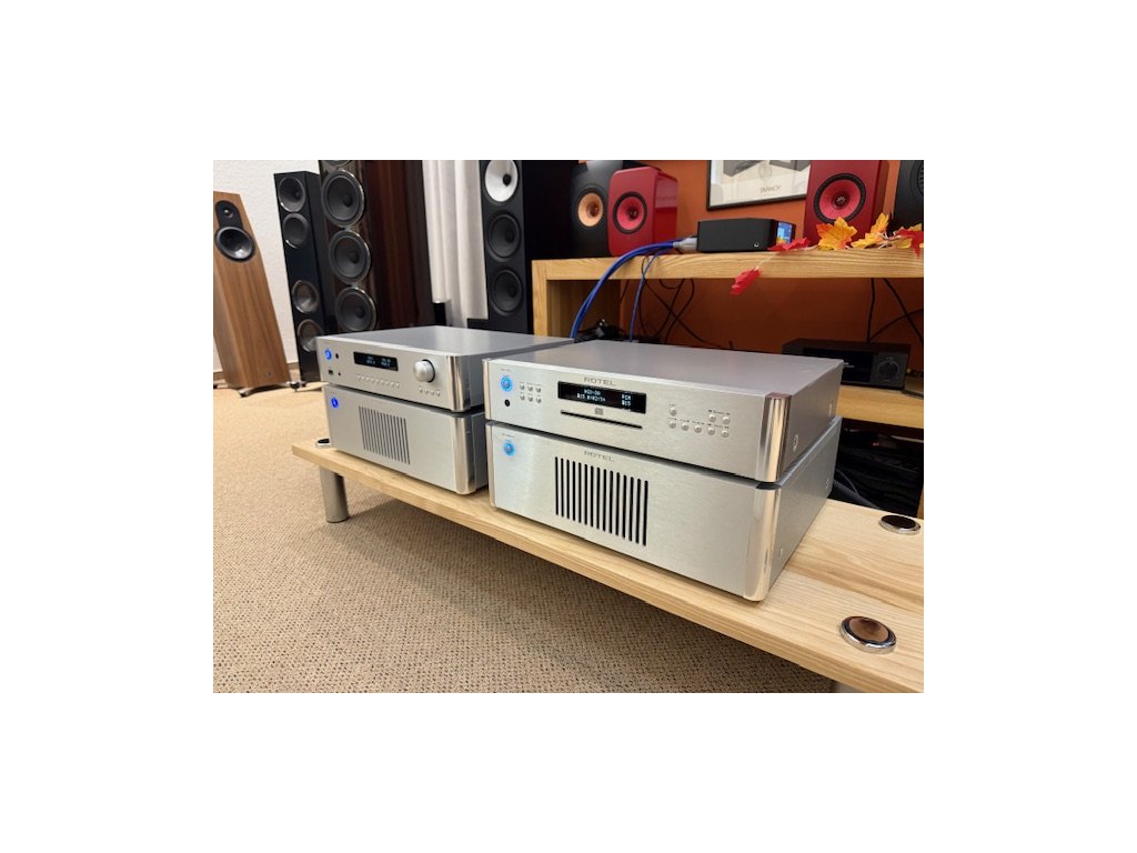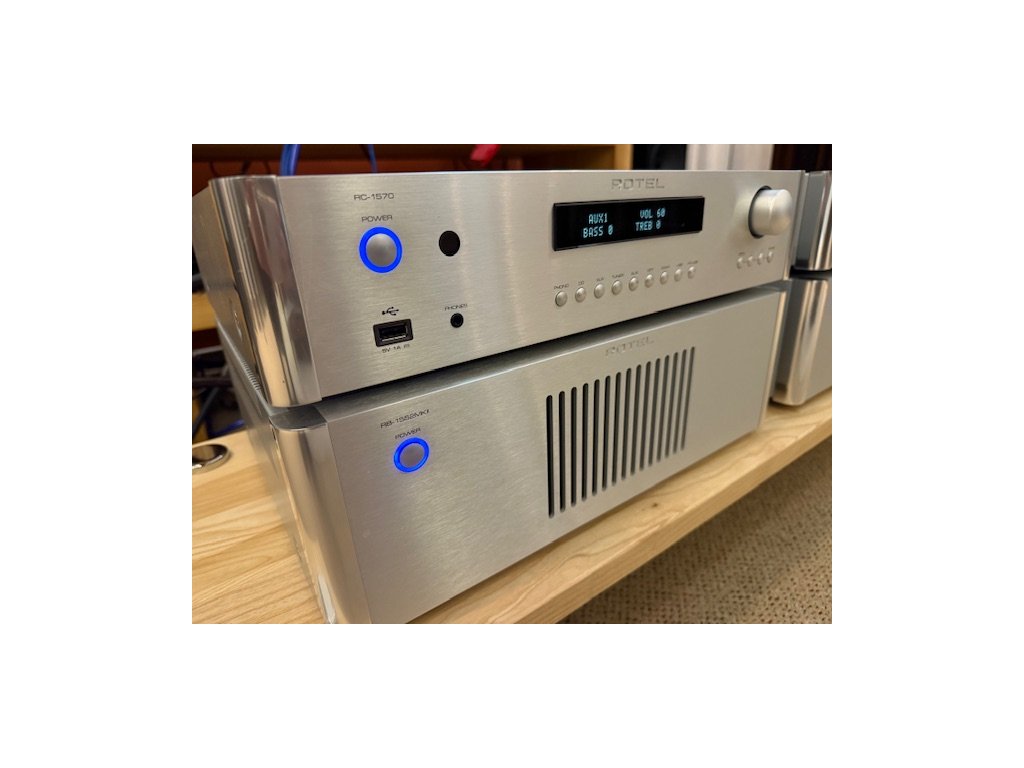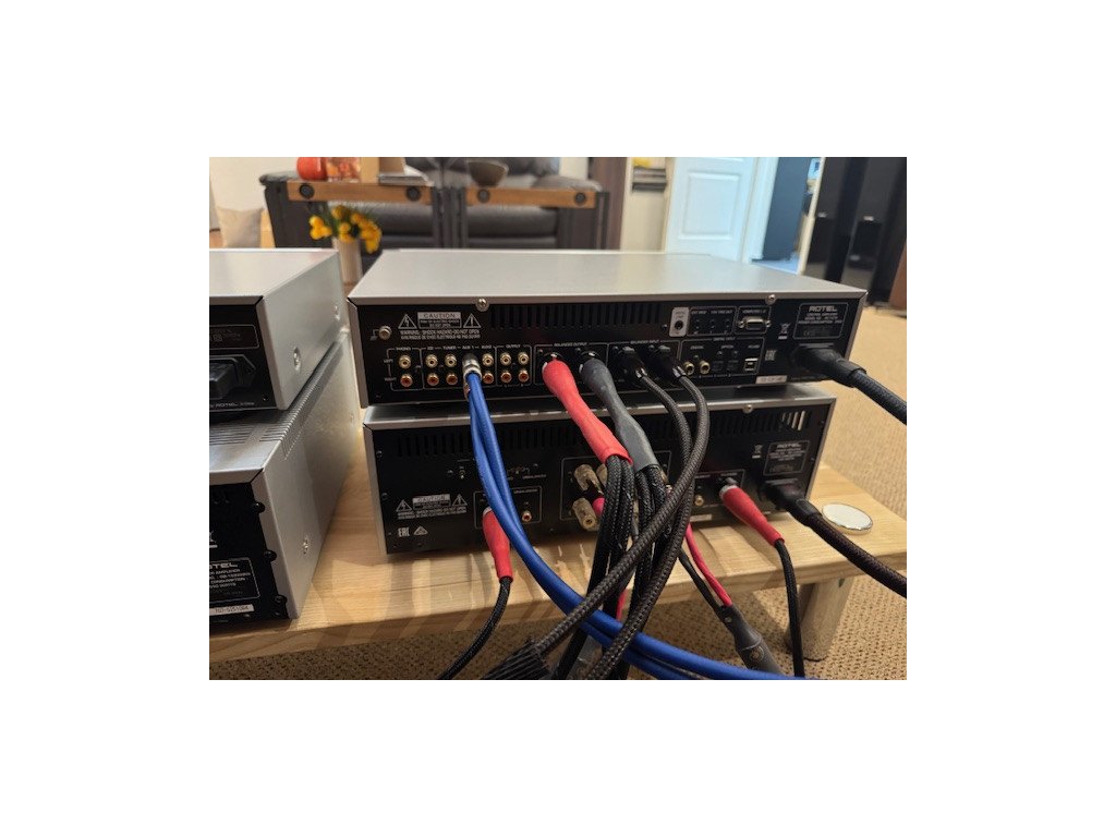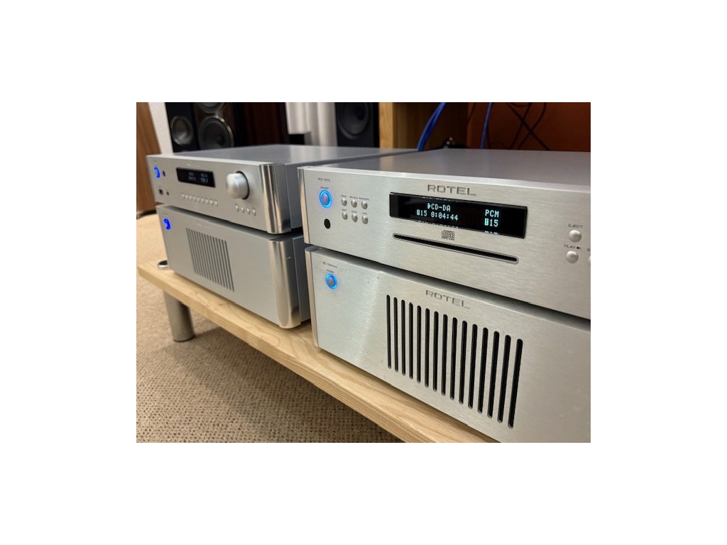 Set složený z předzesilovače Rotel RC 1570, koncových zesilovačů Rotel RB 1552 MKII a Rotel RB 1582 MKII a CD přehrávače Rotel RCD 1570.