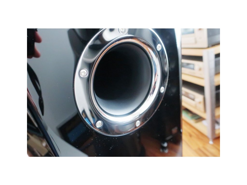 Industriální preciznost je patrná i při pohledu zezadu. Hodnotnost výroby a použitých materiálů může být jen těžko patrnější. Dva zde přítomné bassreflexové výdechy jsou také obroubeny výraznými chromovanými kroužky, zde celkový technicistní designový tón podtrhují i viditelné šrouby.